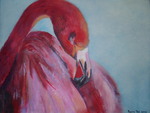 2012flamingo geschilderd met acryl-en parelmoerverf op tafelzeil